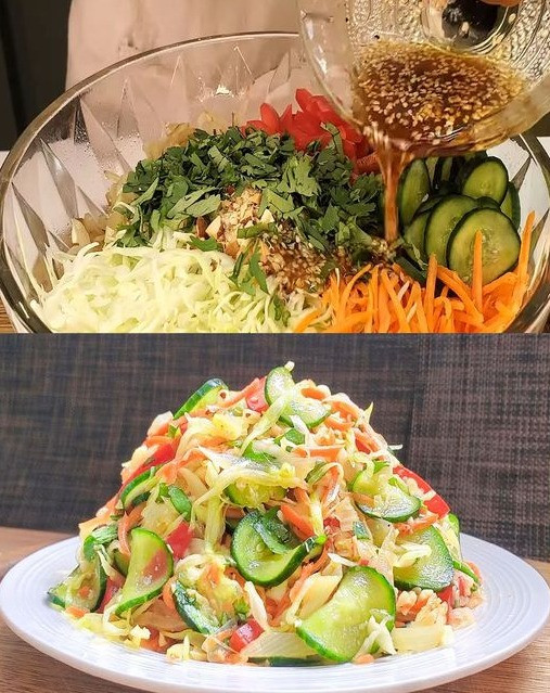 Title: Crisp and Refreshing Cucumber and Cabbage Salad: A Healthy and Delicious Choice