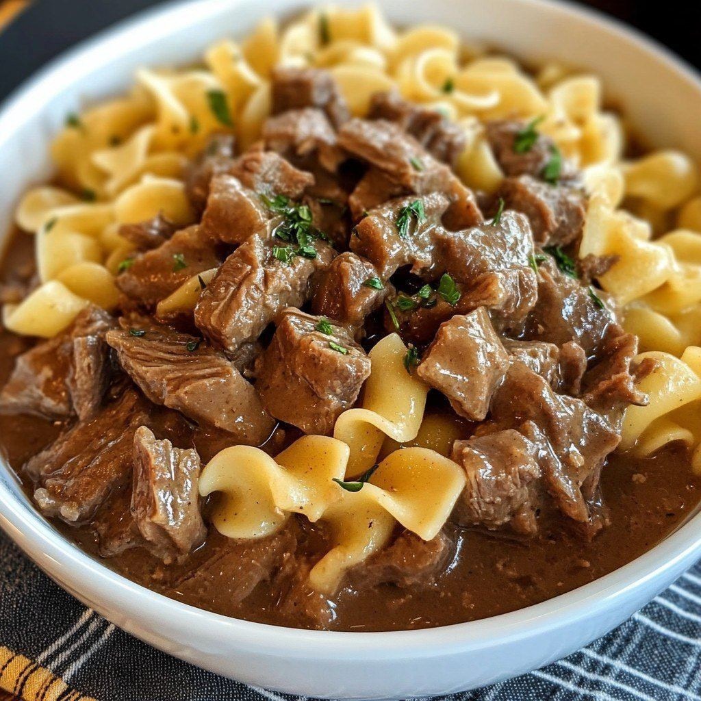 Crockpot Beef Tips & Noodles