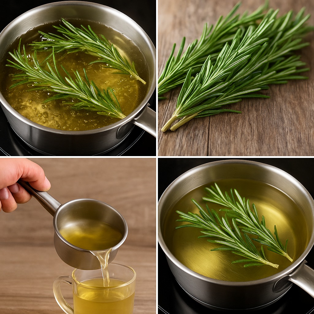 Boiling rosemary releases its rich content of minerals, B vitamins, fiber, flavonoids, and essential acids. To make a simple rosemary infusion, boil a few sprigs in a large pot of water and steep for at least 5 minutes.