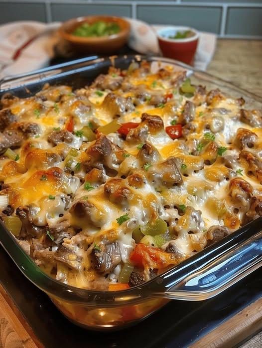 There’s something undeniably comforting about transforming a beloved sandwich into a bubbling, oven-baked masterpiece. This Philly Cheesesteak Casserole takes everything you love—savory beef, sautéed peppers and onions, creamy richness, and melty cheese—and wraps it into a warm, satisfying dish that fills your kitchen with irresistible aroma.