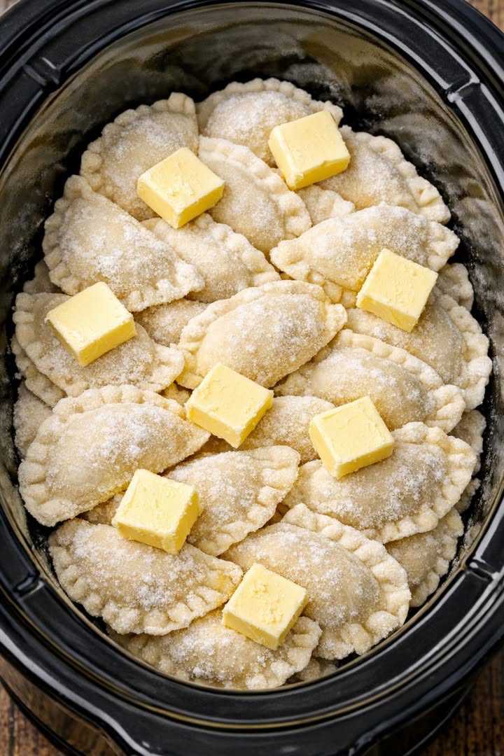 Drop frozen pierogi into the slow cooker with a few extras and it turns into pure comfort.