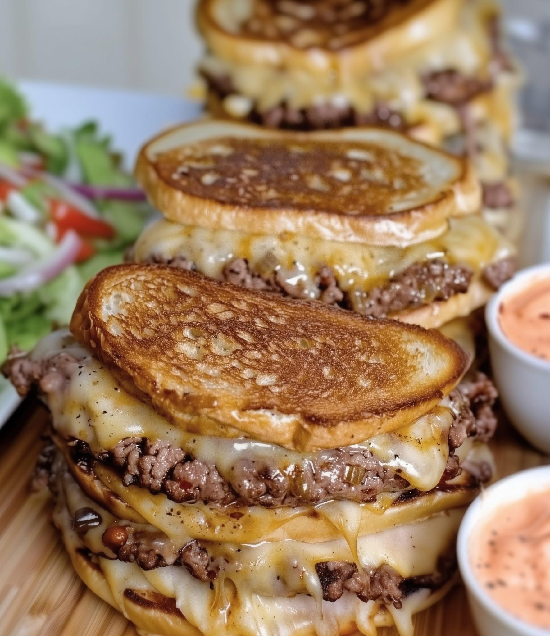 The Patty Melt is an American diner classic — a juicy beef patty layered with melted cheese and caramelized onions, sandwiched between buttery grilled bread. What makes this version special is the homemade secret sauce, a creamy, tangy spread that ties all the flavors together.