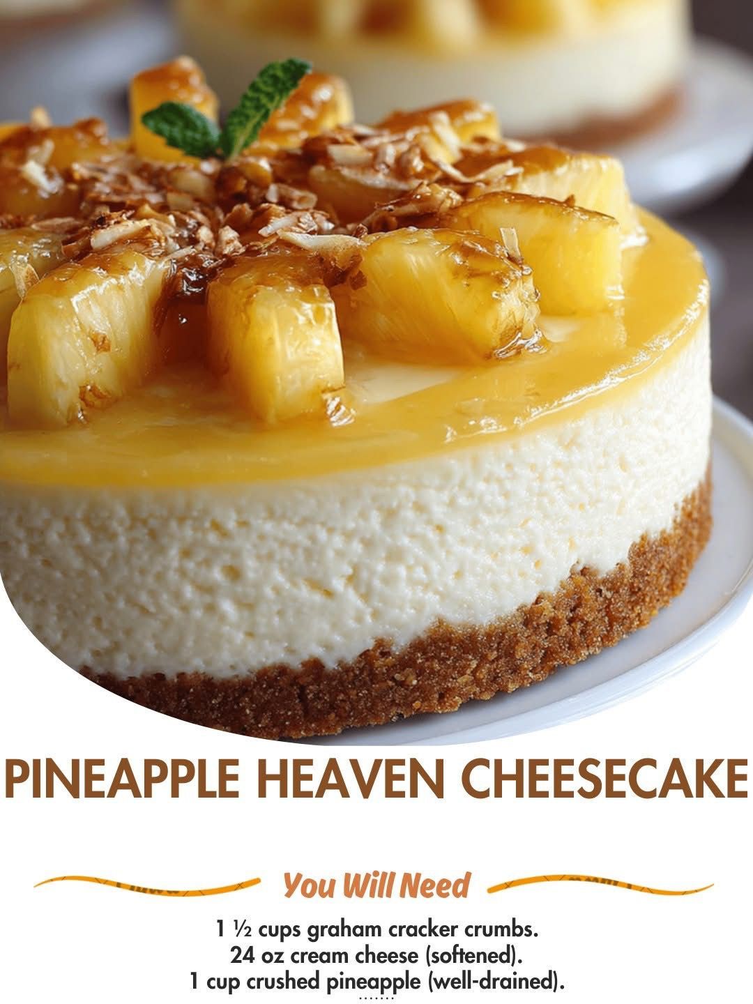 Absolutely! Here’s a full, easy-to-follow recipe for Pineapple Heaven Cheesecake, including the crust, creamy filling, and pineapple topping: